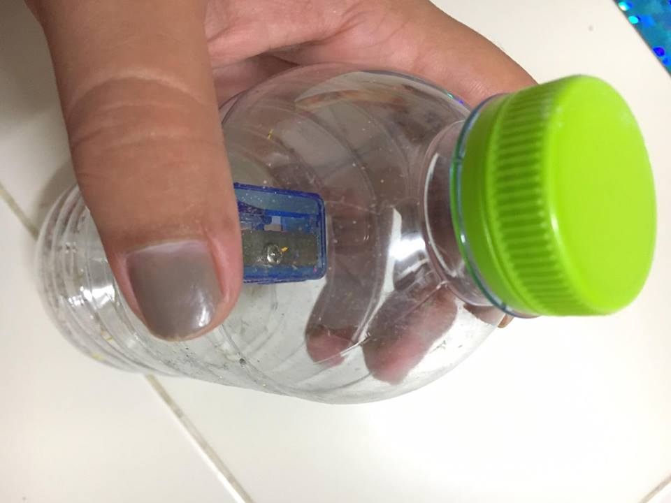 2. นำขวดน้ำที่ล้างแล้วนั้น มาลองเอากบเหลาดินสอมาวัด พร้อมตัดขวดน้ำส่วนบนให้ช่องมีขนาดเท่ากับขนาดของกบเหลาดินสอ